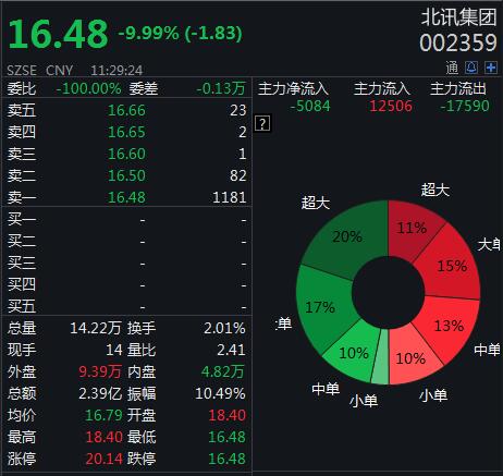 今日早盘,北讯集团闪崩直至跌停,报16.48元。
