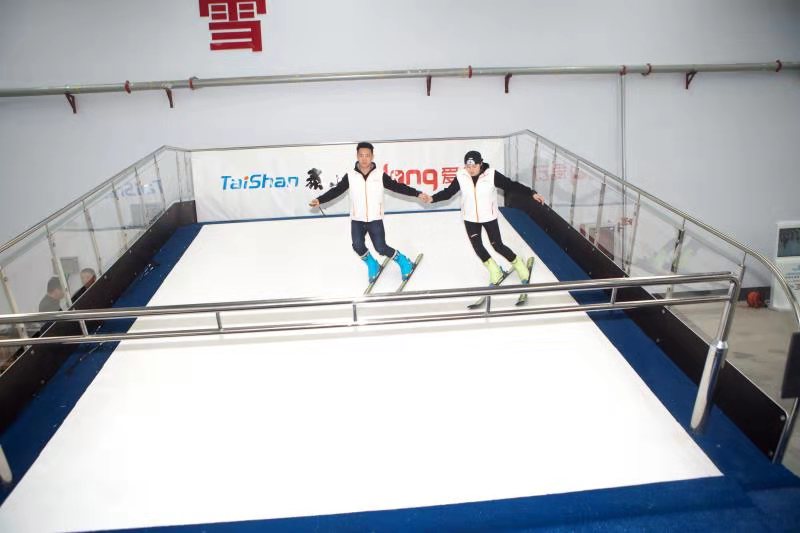 自北京、张家口成功申办2022年冬奥会开始,泰山体育集团将此作为重要发展机遇,专门成立了冰雪项目研发小组,投资近亿元,引进专业人才,设计研发了全球领先的大数据滑雪模拟机、具有自润滑功能高分子冰板、可移动式滑雪跳台设施、铺装满足滑行需求的可释放负离子的专业滑行人造草,同时开发了拥有自主知识产权的冰雪运动防撞垫系列产品、碳纤维雪地自行车及碳纤维滑板、滑竿等冰雪装备配套产品,并且参与制定冰雪产品的国家标准和行业标准。