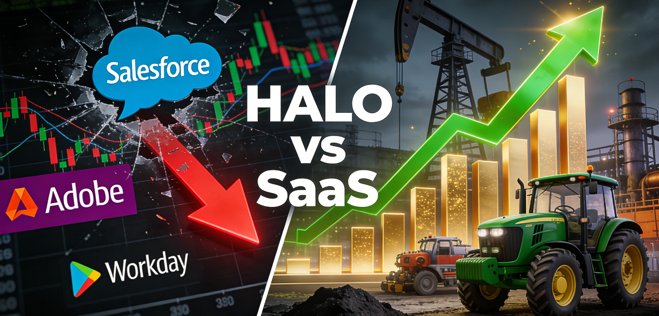 软件股哀鸿遍野之际,另一类资产却在悄然崛起。石油石化、煤炭、有色金属等“重资产、低淘汰”板块逆势暴涨,美国拖拉机巨头迪尔年内涨幅约33%。华尔街将这一策略命名为HALO(Heavy Assets, Low Obsolescence)交易:做多“AI难以替代且为其所依赖”的重资产,同时做空“易于被AI颠覆”的轻资产。
