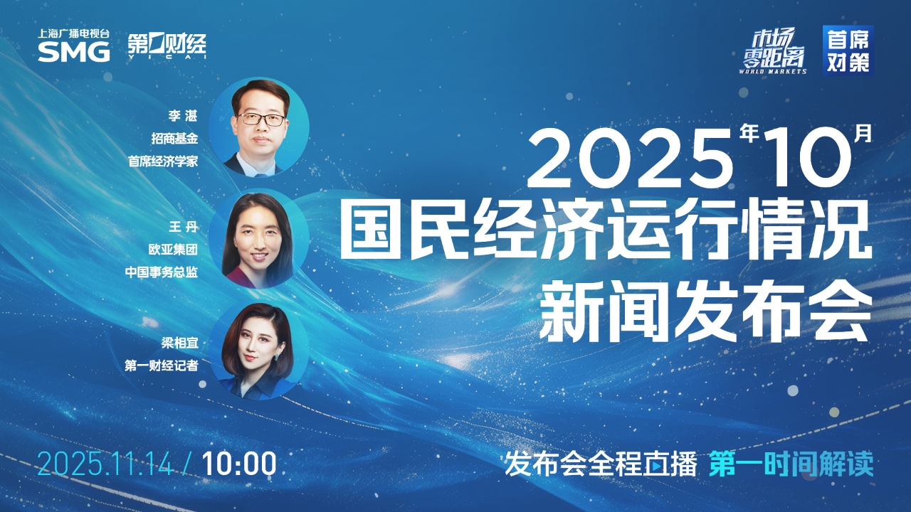 国务院新闻办公室将于2025年11月14日(星期五)上午10时举行新闻发布会,请国家统计局新闻发言人、总经济师、国民经济综合统计司司长付凌晖介绍2025年10月份国民经济运行情况,并答记者问。第一财经将全程直播并邀请:招商基金首席经济学家李湛、欧亚集团中国事务总监王丹第一时间解读。敬请关注!