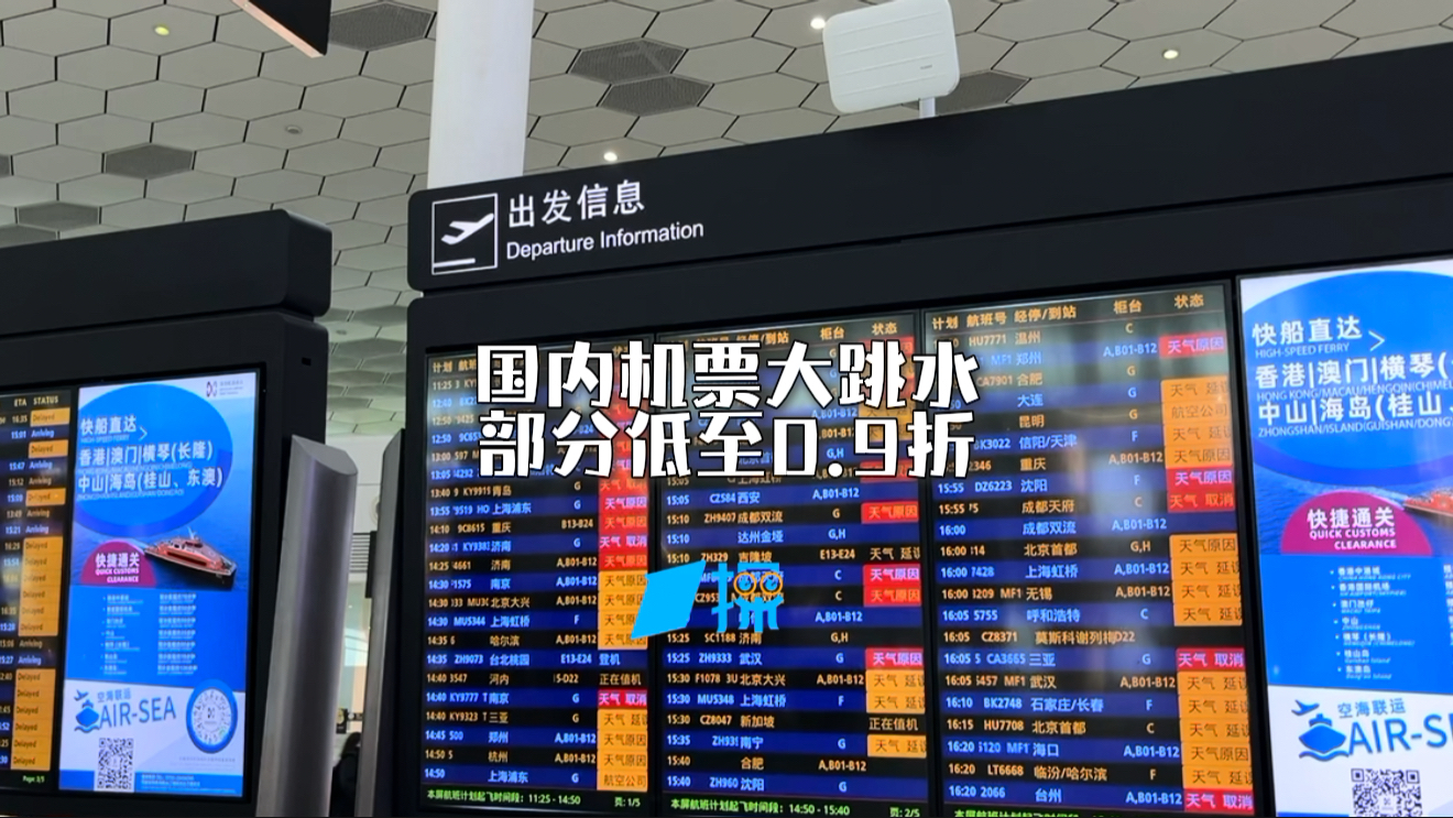 国内机票大跳水 部分低至0.9折 实探:广州飞上海机票只要200多元 业内预估未来两月将温和上涨