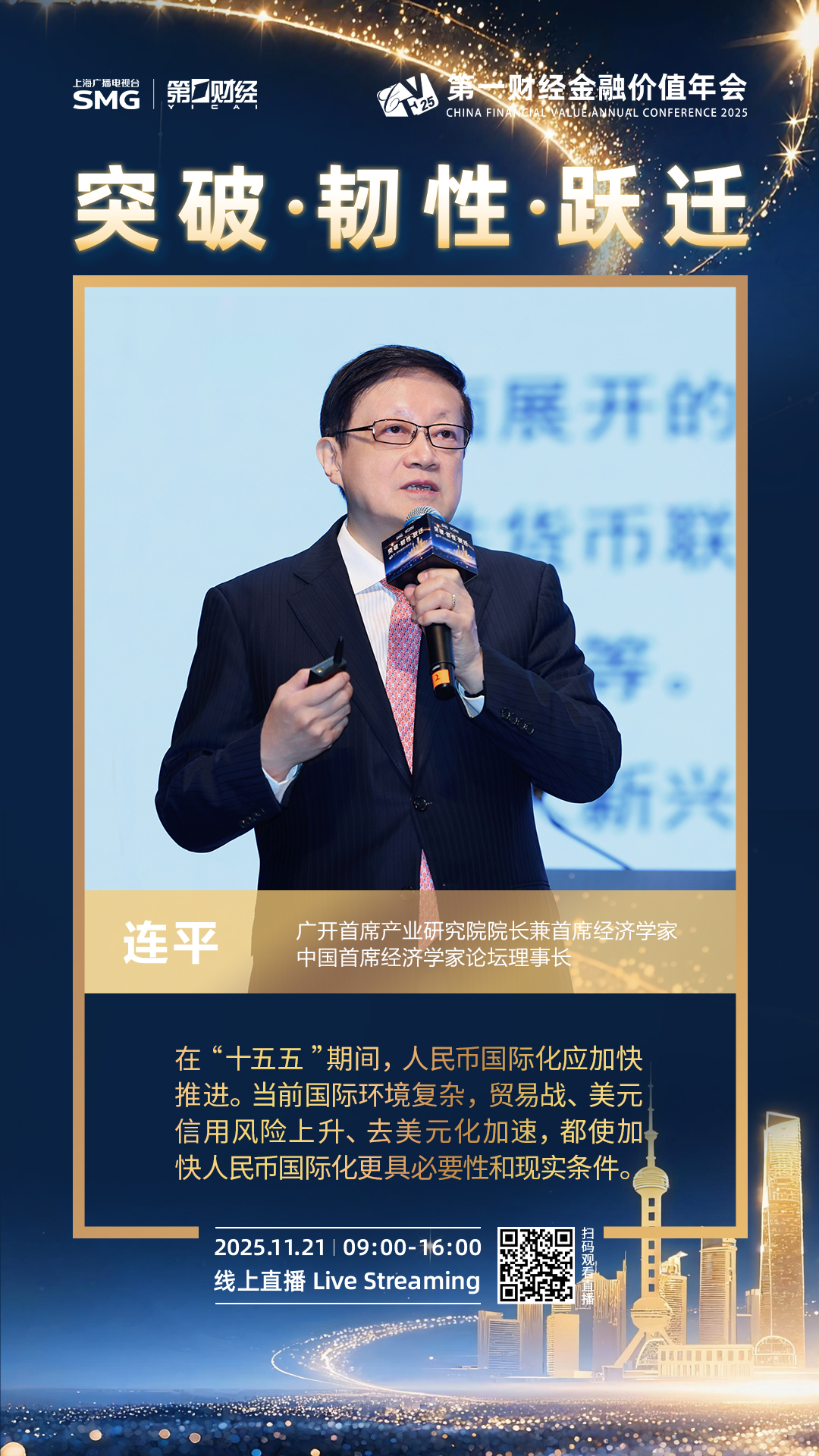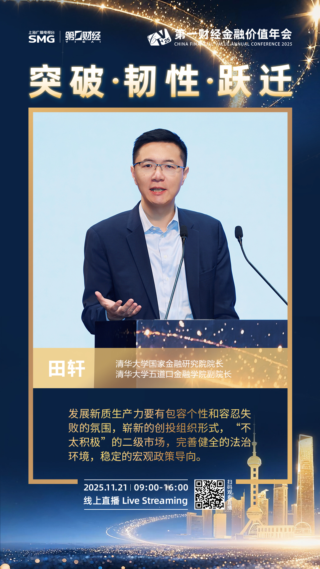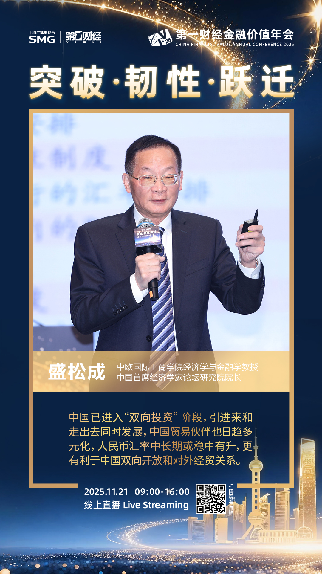 2025年11月21日,2025第一财经金融价值年会(CFV)在上海举行,本届年会围绕“突破·韧性·跃迁”的年度核心议题,深入探索并预见中国金融领域的系列变革,搭建金融对话平台,展现了第一财经的责任与引领。