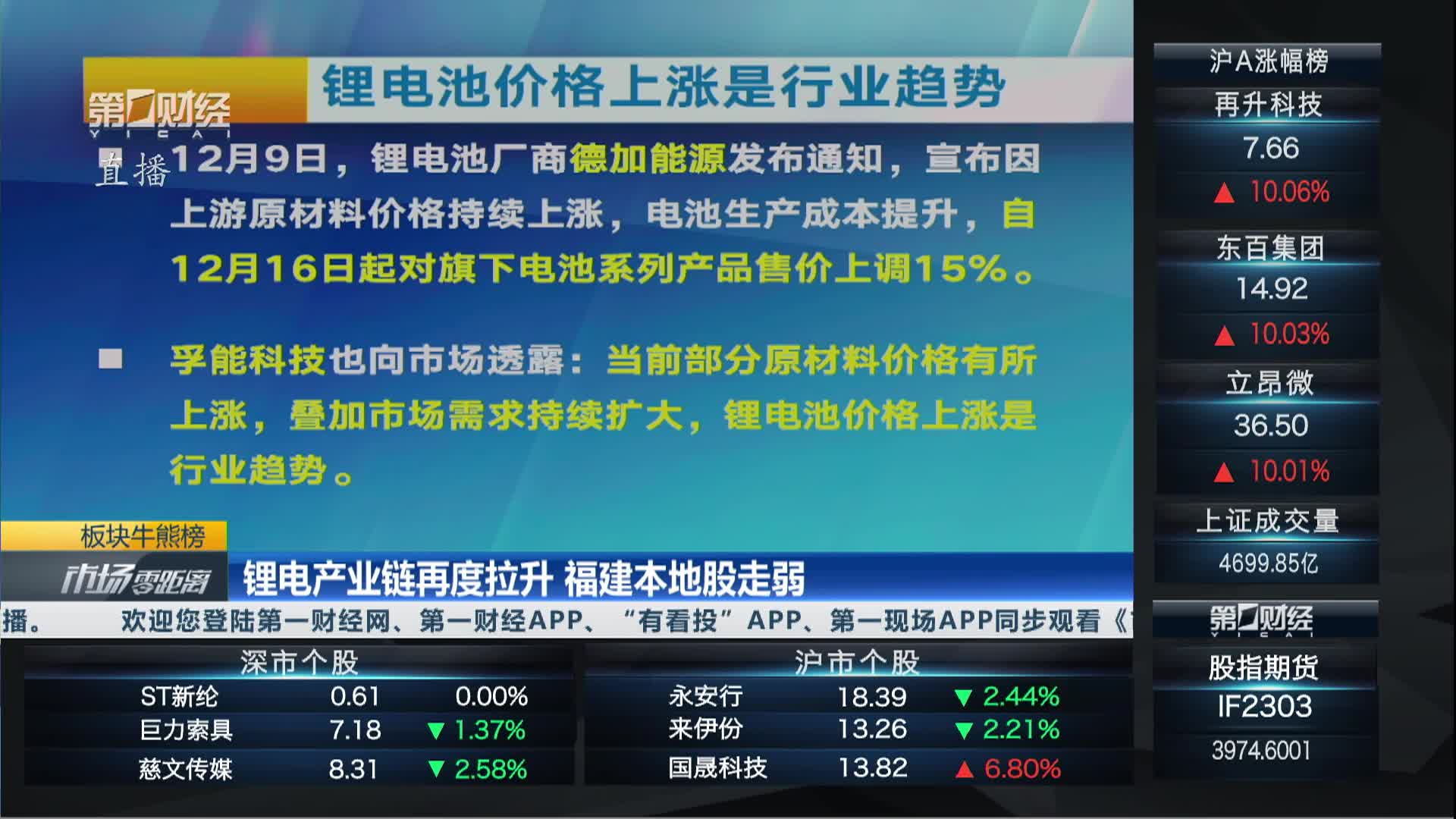 【今日盘面观察】商业航天逆市再度走强,福建板块回落;此外,锂电产业链再度异动,以电解液方向最为活跃,其中多氟多、永太科技等领涨。消息面,今年以来,多家锂电产业链中游材料企业相继披露大额采购协议,涵盖正极、电解液、铜箔、隔膜等关键环节,订单金额动辄数十亿元至数百亿元。宁德时代、中创新航、LGES等海内外巨头加速锁定供应,反映出行业对需求的乐观预期。持续强势的福建板块早盘走低,欣贺股份、舒华体育跌停,德艺文创跌超10%。
