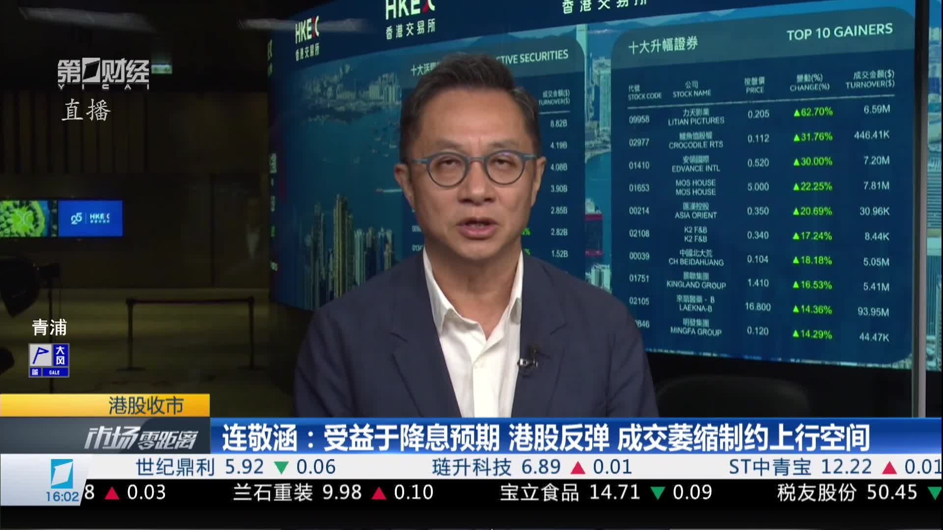 香港股票分析师协会理事连敬涵:受惠降息预期 港股反弹 成交萎缩制约上行空间丨港股收市