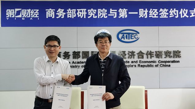商务部研究院院长顾学明与第一财经总编辑杨宇东分别在签约仪式上致辞。