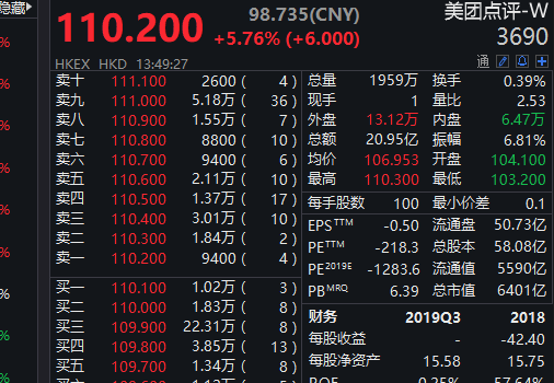 13:50【美团点评股价涨破110港元,续创新高】美团点评股价涨破110港元,续创新高,现涨超5%,成交额超过21亿元。此前公司获瑞信升其目标价至135港元。