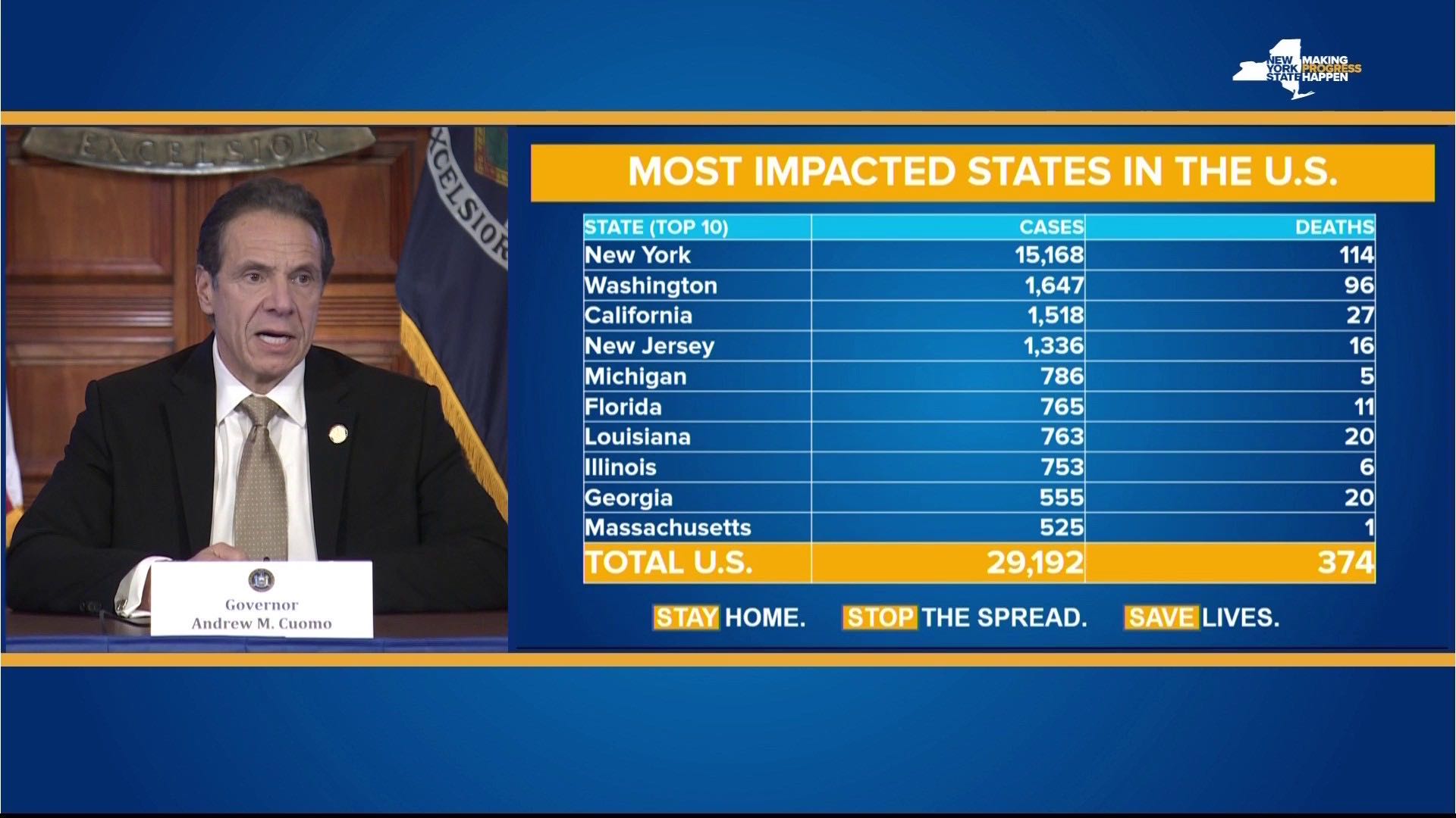 23:47【纽约州新增4812例确诊病例 累计确诊病例达15168例】美国纽约州州长科莫:纽约州新增4812例新冠肺炎确诊病例,累计确诊病例达15168例,死亡病例累计增加至114例。