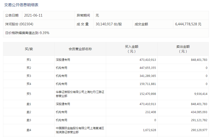 16:43【洋河股份跌停 机构资金现分歧】洋河股份放量跌停,盘后数据显示,深股通卖出8.48亿元并买入4.73亿元,三机构合计卖出9.64亿元,三机构买入9.49亿元。