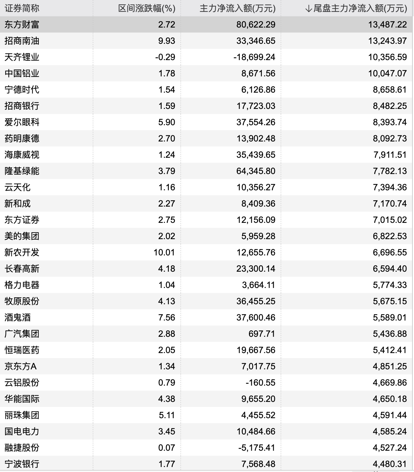 15:59【主力今日尾盘买卖这些个股 这只券商股获抢筹】据统计,5月31日,主力资金尾盘净买入东方财富1.35亿元、招商南油1.32亿元、天齐锂业1.04亿元;万华化学、保利发展、奥翔药业遭主力抛售额居前。