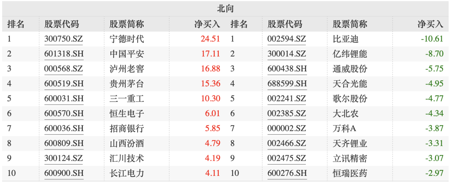 20:46【“聪明资金”近七日买卖这些个股】据Wind数据,北向资金近七日大幅净买入宁德时代、中国平安、泸州老窖,净买入额分别为24.51亿元、17.11亿元、16.88亿元;比亚迪、亿纬锂能、通威股份遭净卖出规模居前,金额分别为10.61亿元、8.7亿元、5.75亿元。