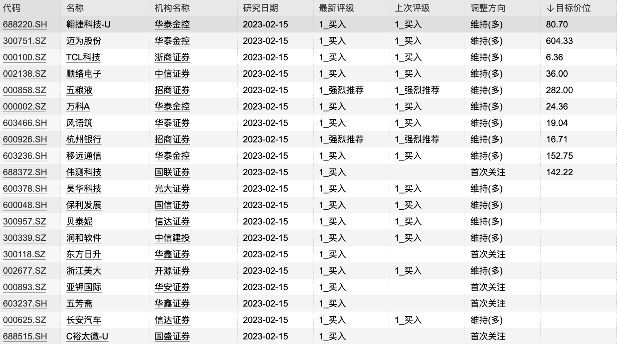 20:55【机构今日看好这些个股】据统计,2月15日,机构共给出20次最新买入评级,其中10只个股目标价获公布: