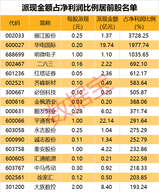 已披露分红派现计划的股票中,每10股派现金额在10元以上的有80家,每10股派现金额最高的是贵州茅台,公司拟每10股派现259.11元;其次是永兴材料、兖矿能源等,每10股派现金额分别为50元、43元。(数据宝)举报