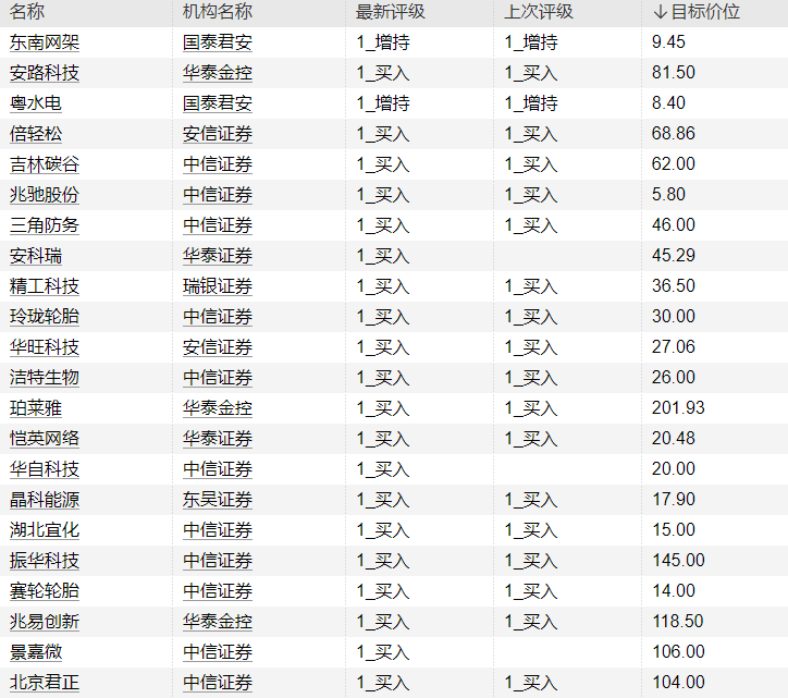 23:29【机构今日看好这些个股】据统计,5月26日,机构共给出39次最新买入评级,其中22只个股目标价获公布:-晶科能源获东吴证券看好,目标价17.9元;-恺英网络获天风证券、国盛证券等五家机构青睐,最高目标价为20.48元;-粤水电、北京君正、光线传媒等个股在列。