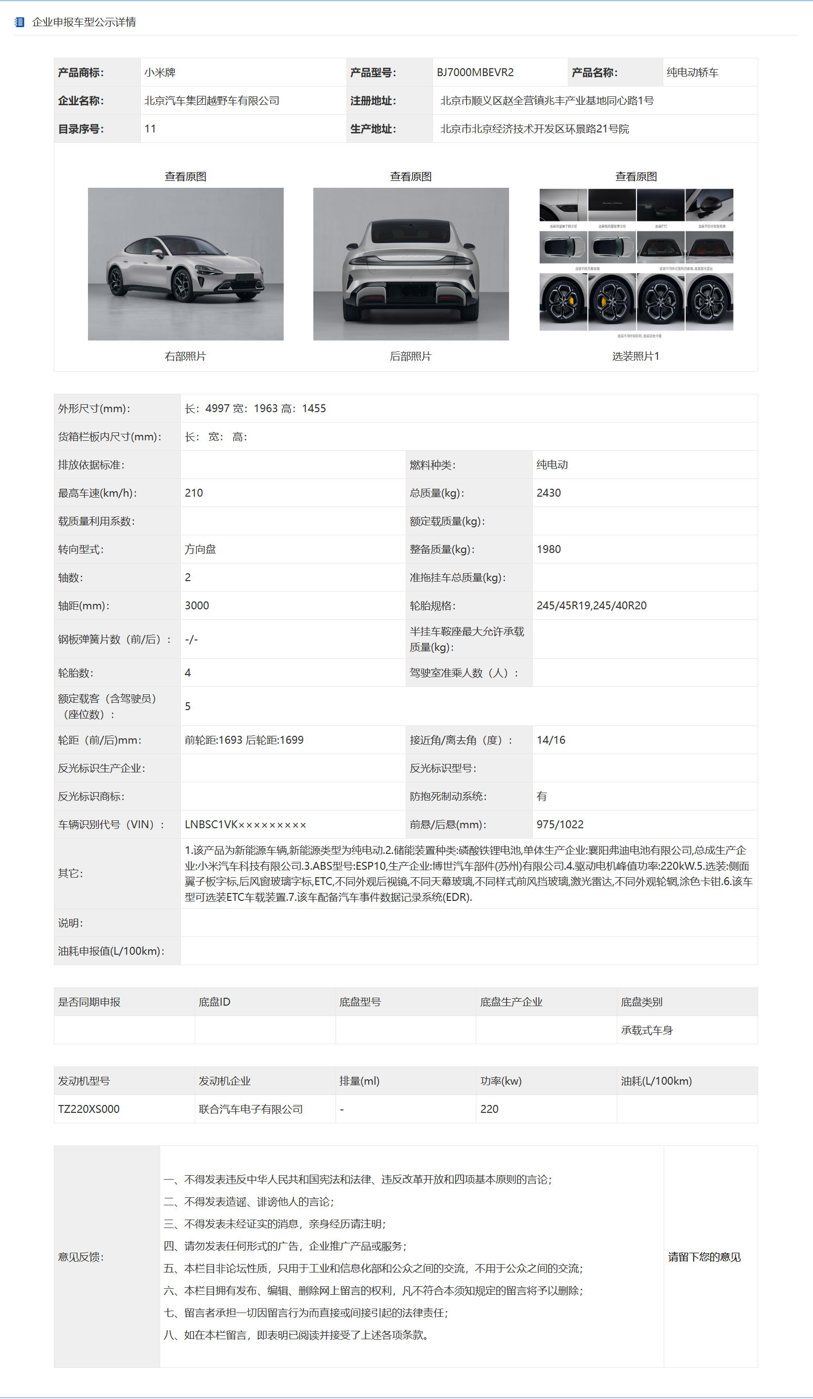 16:18【第377批《道路机动车辆生产企业及产品公告》新产品公示:两款小米牌纯电动轿车在列】工信部发布关于《道路机动车辆生产企业及产品公告》(第377批)和《享受车船税减免优惠的节约能源使用新能源汽车车型目录》(第五十六批)拟发布内容的公示,两款小米牌纯电动轿车在列,生产企业为北京汽车集团越野车有限公司。