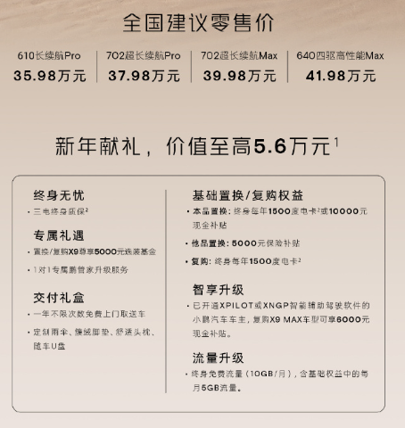 19:54【小鹏X9上市 售价35.98万起】小鹏汽车发布MPV新车X9,上市价格公布,610长续航Pro版35.98万,702超长续航Pro版37.98万,702超长续航Max版39.98万,640四驱高性能Max版41.98万。