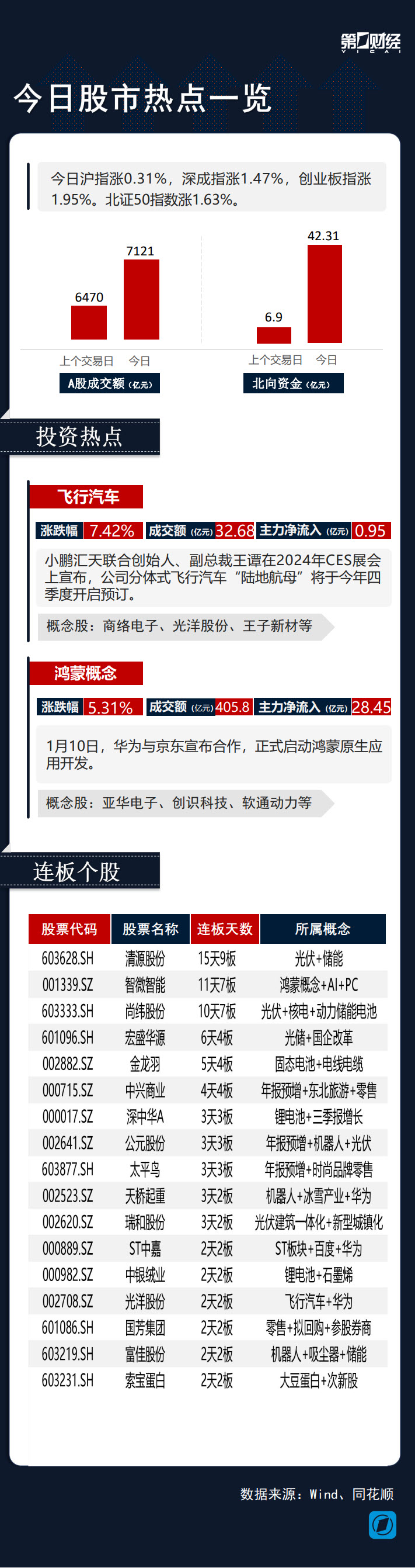 16:32【热市追踪丨飞行汽车概念大涨,鸿蒙概念股集体走强】1月11日,A股三大指数集体收涨,沪指涨0.31%,深成指涨1.47%,创业板指涨1.95%。北证50指数涨1.63%。