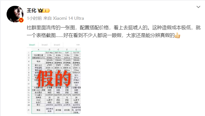 11:35【网传小米汽车21.9万起售,小米王化发文辟谣】小米集团公关部总经理王化在微博发文,辟谣网传小米汽车配置及价格。王化表示,“社群里面流传的一张图,配置搭配价格,看上去挺唬人的。这种造假成本极低,就一个表格截图……好在看到不少人都说一眼假,大家还是能分辨真假的。”根据网传的表格,小米汽车基础款价格为21.9万元。
