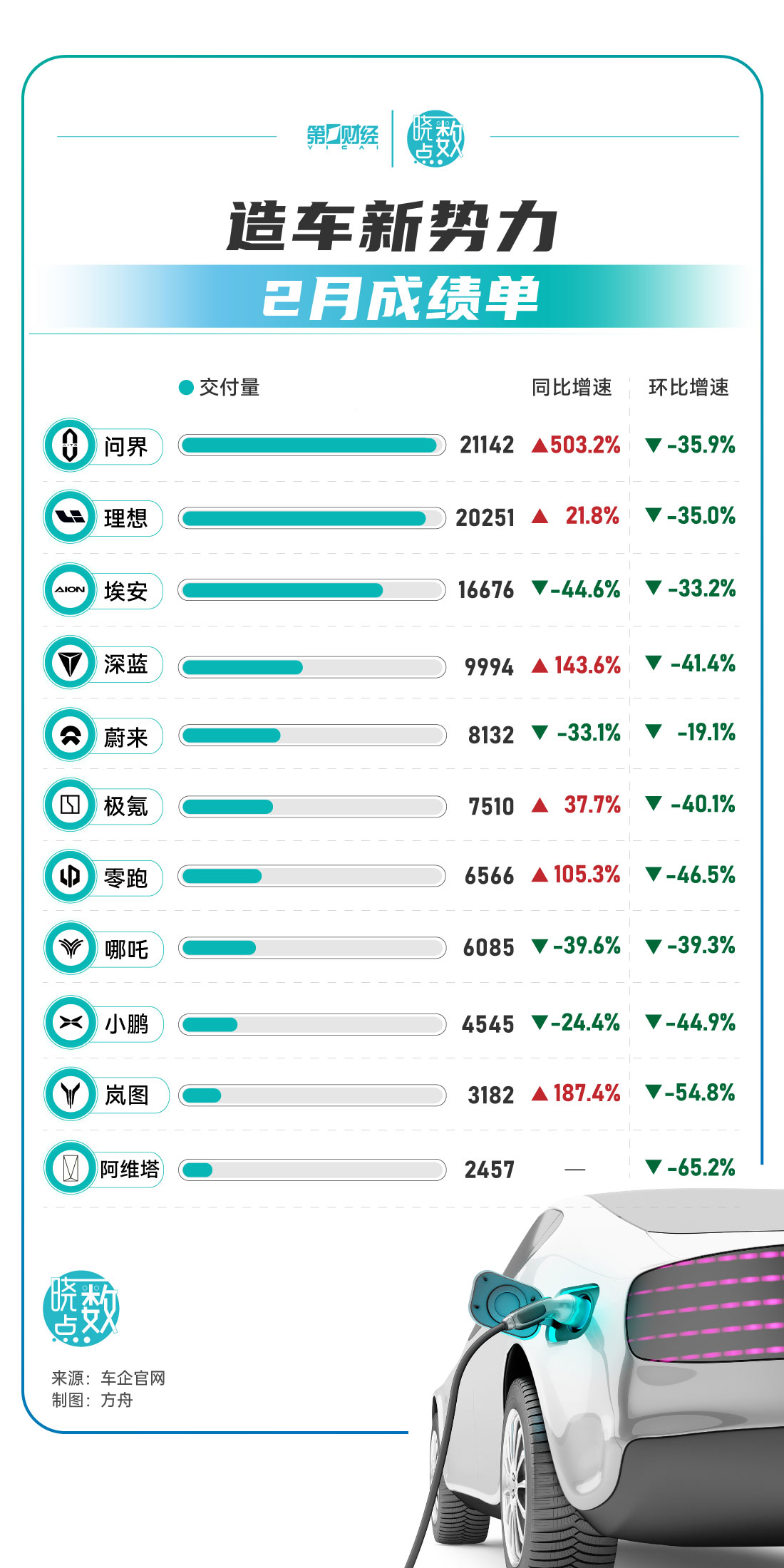 22:23【晓数点丨造车新势力2月成绩单出炉,问界蝉联冠军】3月1日,各汽车品牌纷纷公布了2月交付数据。AITO问界交付量同比增503%,蝉联中国市场新势力品牌月销量冠军。一图看懂>>