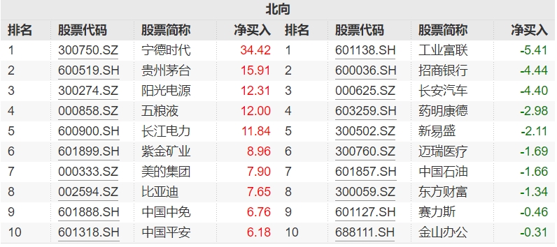 21:41【北向资金近七日买卖这些个股 宁德时代获加仓超34亿元】据Wind数据,北向资金近七日大幅净买入宁德时代、贵州茅台、阳光电源,净买入额分别为34.42亿元、15.91亿元、12.31亿元;工业富联、招商银行、长安汽车遭净卖出规模居前,金额分别为5.41亿元、4.44亿元、4.40亿元。