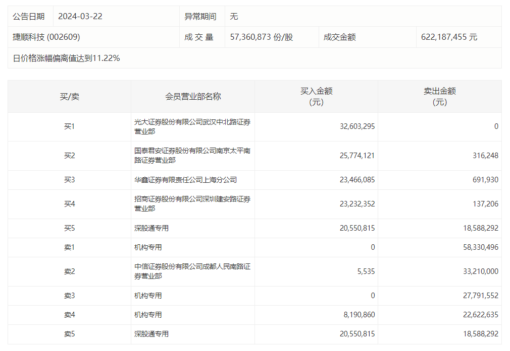 16:25【捷顺科技今日涨停 三机构净卖出1.01亿元】捷顺科技今日涨停,成交额6.22亿元,换手率12.57%,盘后龙虎榜数据显示,深股通专用席位买入2055.08万元并卖出1858.83万元,三机构净卖出1.01亿元。