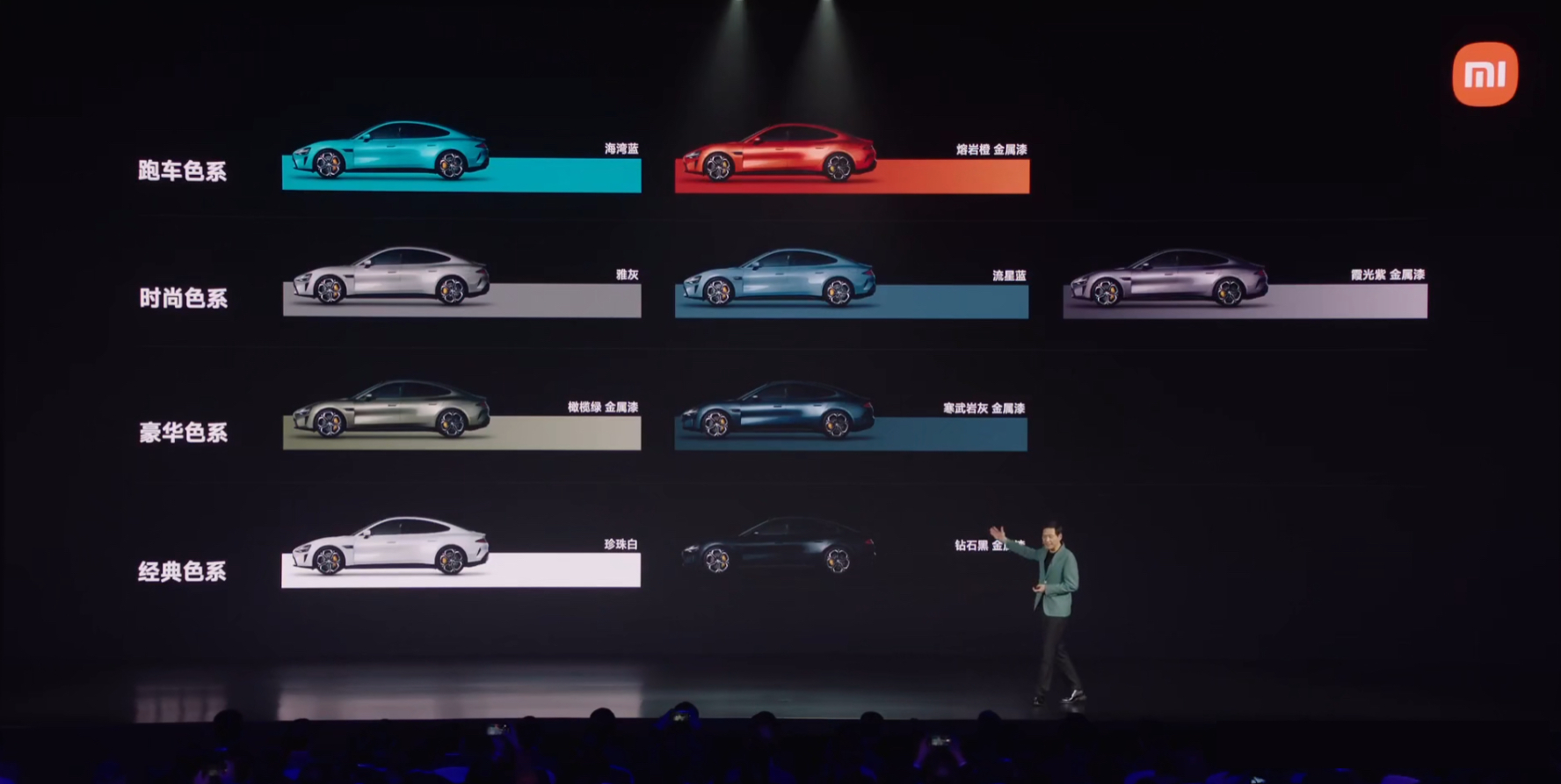 19:17【小米SU7首发将有9款颜色】小米集团董事长雷军在发布会上表示,小米SU7正式发布,首发将有9款颜色。