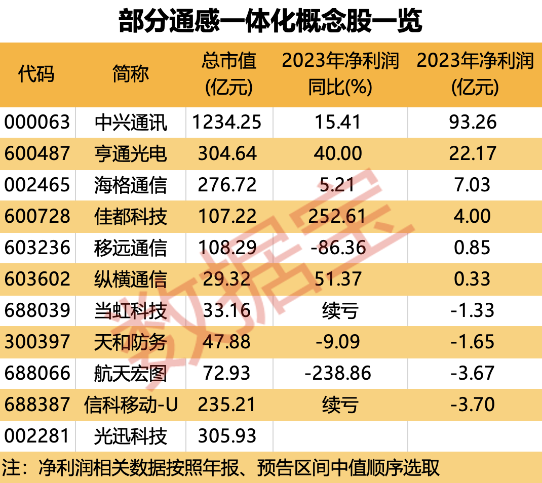 07:57【关键技术登场,5G-A联手低空经济,通感一体化概念股出炉】近期,中国移动在杭州全球首发5G-A商用部署,公布首批含宁波在内的100个5G-A网络商用城市名单,并宣布计划于年内扩展至全国超300个城市,建成最大规模的5G-A商用网络。据悉,5G-A通感一体化能力将有力支撑低空经济发展。5G-A可以为低空飞行器上的乘客提供网络覆盖,通感一体化则可以为低空飞行器提供飞行监管、全生命周期管理等服务能力。