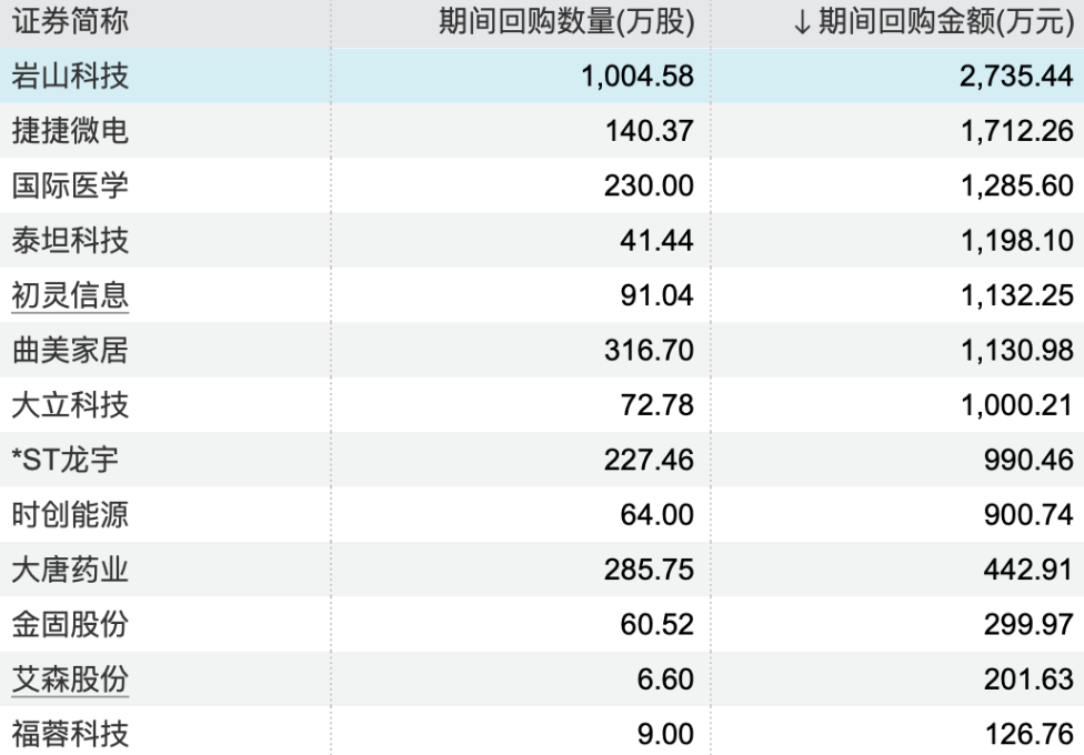22:07【今日13家上市公司股票获回购,岩山科技回购金额最高】截至发稿,5月28日,13家上市公司回购股票,其中岩山科技回购金额最高达2735.44万元,回购数量1004.58万股,捷捷微电回购金额达1712.26万元,回购数量140.37万股,国际医学回购金额达1285.6万元,回购数量230万股。