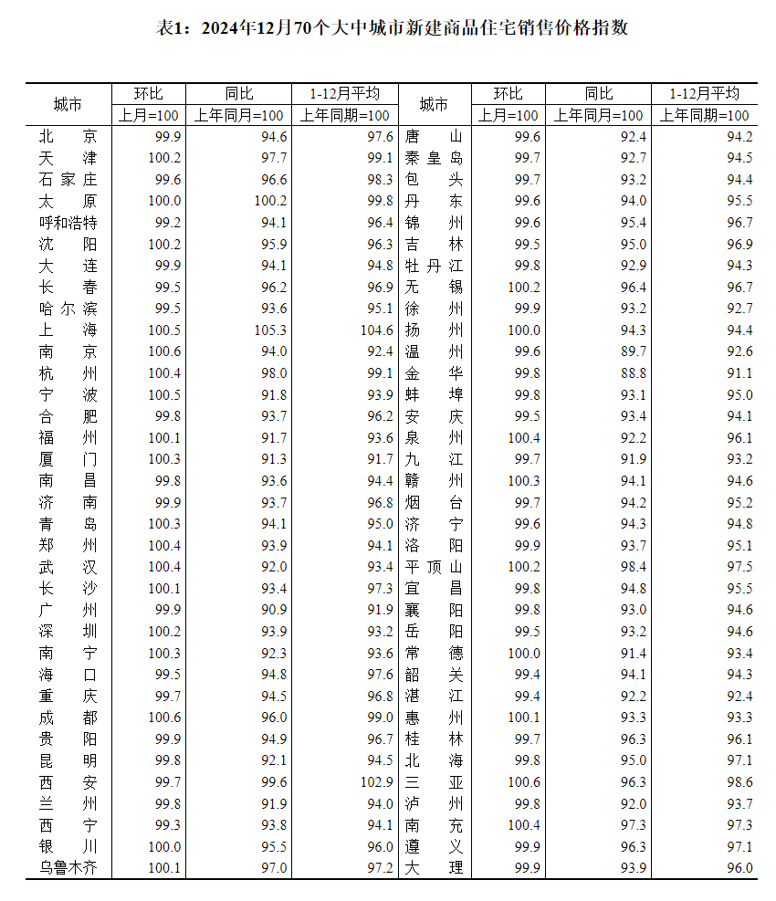 09:32【国家统计局:12月份,70个大中城市中一线城市商品住宅销售价格环比上涨】国家统计局数据显示,2024年12月份,70个大中城市中,一线城市商品住宅销售价格环比上涨,二三线城市环比总体降幅收窄;一二三线城市同比降幅均继续收窄。