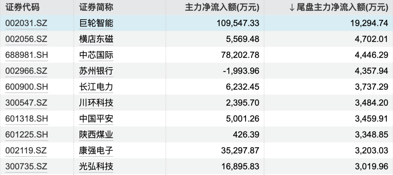16:05【主力今日尾盘买卖这些个股】据Wind数据统计,1月17日,主力尾盘大幅净流入巨轮智能、横店东磁、中芯国际,金额为1.93亿元、4702万元、4446万元;同时,中兴通讯、永辉超市、天孚通信尾盘主力净流出规模居前。