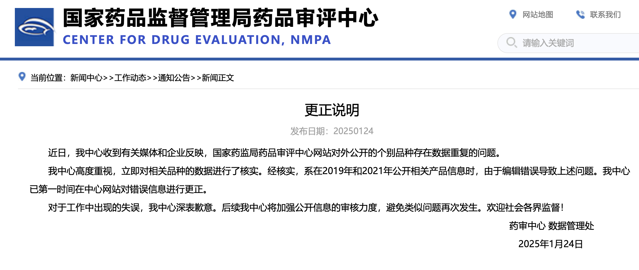16:37【药审中心致歉:个别品种数据重复系编辑错误导致,已更正】据国家药品监督管理局药品审评中心官网,药审中心数据管理处发布更正说明称,近日,中心收到有关媒体和企业反映,国家药监局药品审评中心网站对外公开的个别品种存在数据重复的问题。中心高度重视,立即对相关品种的数据进行了核实。经核实,系在2019年和2021年公开相关产品信息时,由于编辑错误导致上述问题。中心已第一时间在中心网站对错误信息进行更正。对于工作中出现的失误,中心深表歉意。后续中心将加强公开信息的审核力度,避免类似问题再次发生。欢迎社会各界监督!