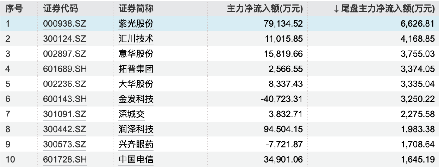 15:53【主力今日尾盘买卖这些个股】Wind数据统计,2月21日,主力尾盘大幅净流入紫光股份、汇川技术、意华股份,金额为6627万元、4169万元、3755万元;同时,协创数据、首都在线、浙版传媒尾盘主力净流出规模居前。
