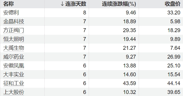 16:15【61只个股连续上涨5个交易日及以上】Wind数据显示,截至3月4日收盘,61只个股连续上涨5个交易日及以上。安德利连续上涨8个交易日,金晶科技、方正阀门、恒太照明、大禹生物、威尔药业连续上涨7个交易日。从累计涨幅来看,浩淼科技连涨期间累计涨幅为77.54%,芭薇股份连涨期间累计涨幅为59.76%。