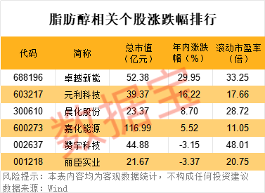 A股中,脂肪醇相关概念股不多,其中嘉化能源是龙头,公司拥有脂肪醇装置产能为20万吨/年。截至最新,赞宇科技、卓越新能、晨化股份已披露2024年年报数据,均为预增。