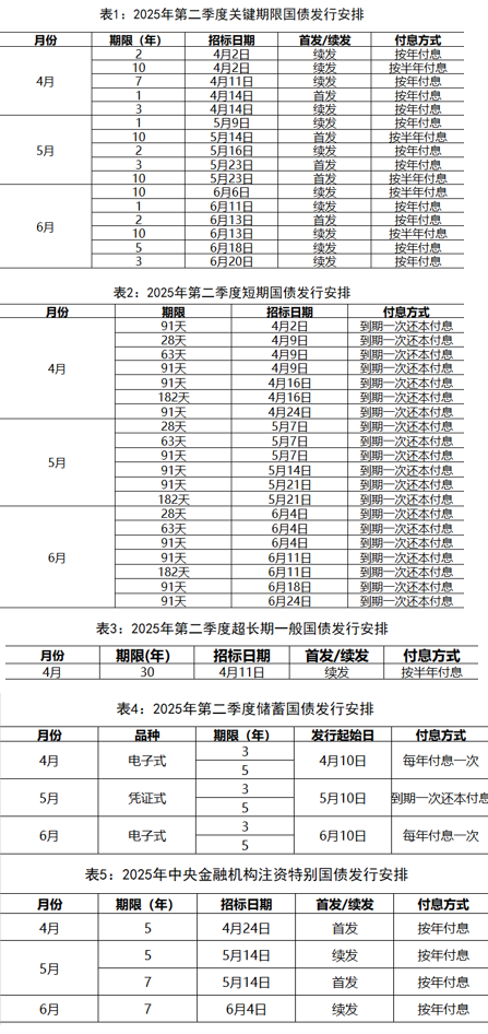 18:22【财政部公布2025年第二季度国债发行有关安排】财政部公布2025年第二季度关键期限国债、短期国债、超长期一般国债、储蓄国债、中央金融机构注资特别国债发行有关安排。超长期特别国债发行安排另行公布。