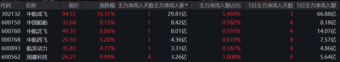 据Wind数据,国防军工板块早盘获主力资金加仓超130亿元,该板块已连续7日获主力资金加仓。其中中航成飞获主力资金加仓近30亿元,中国船舶、中航沈飞均获主力资金净流入超8亿元。