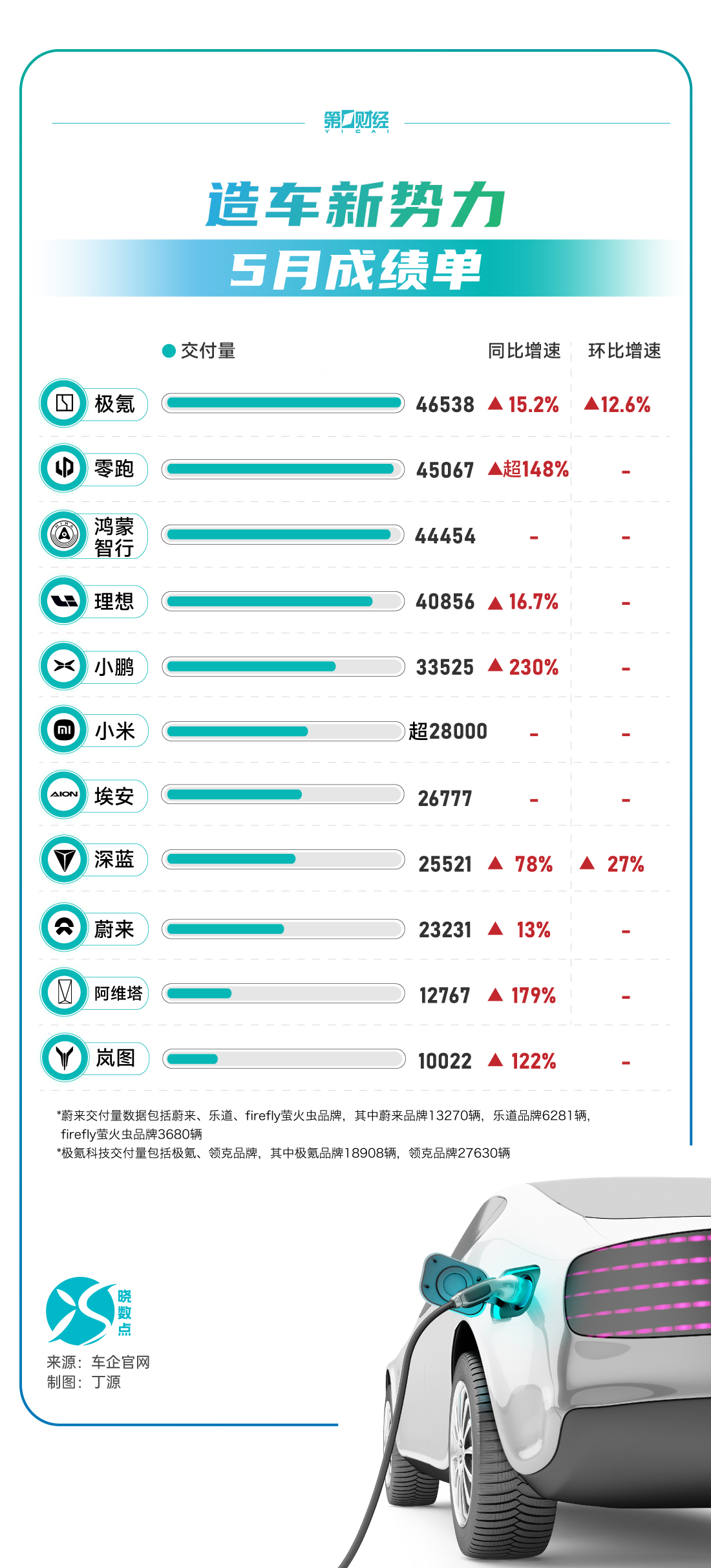 【晓数点丨造车新势力5月成绩单:极氪超4.6万辆,小鹏同比增230%】一图速览>>