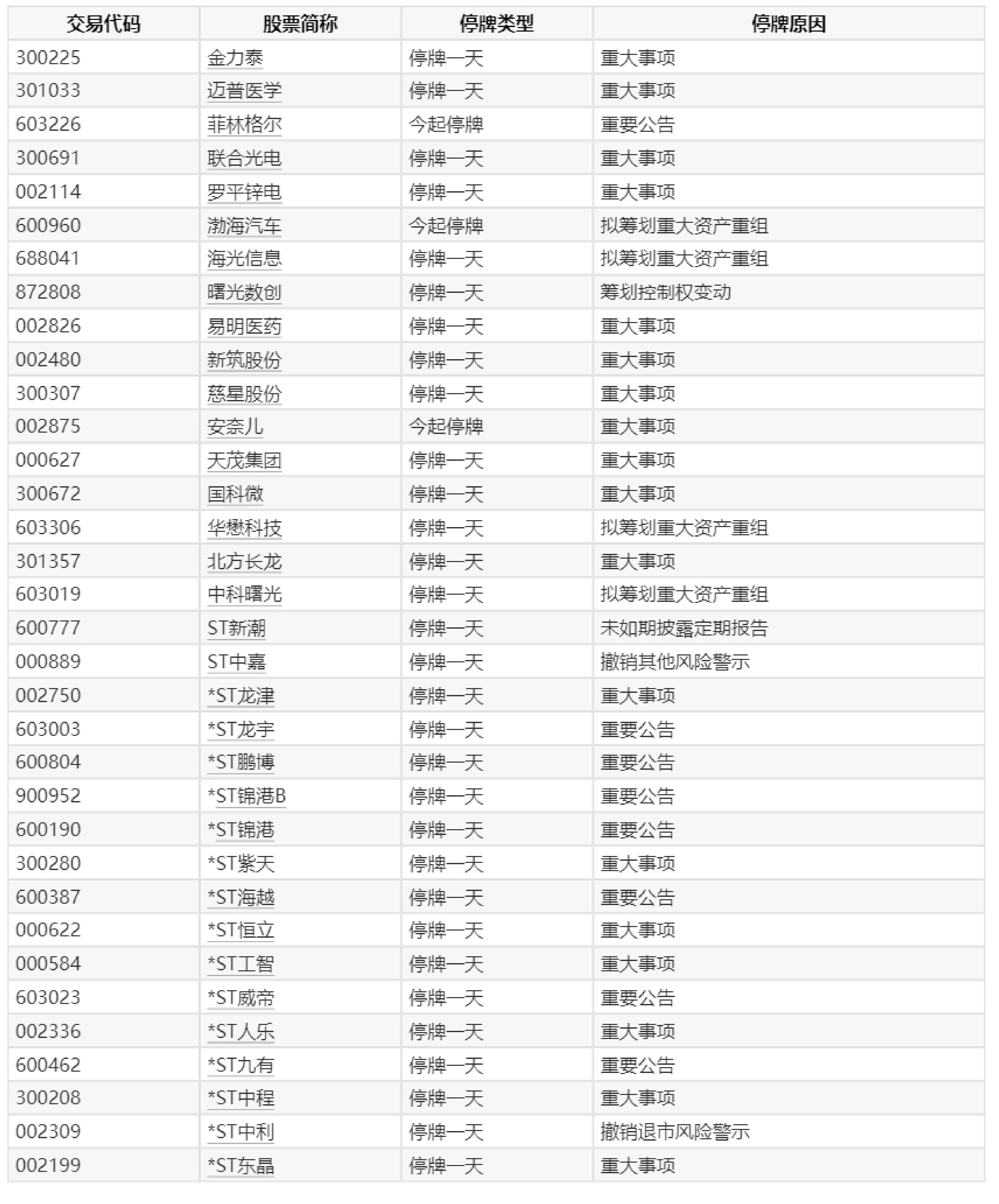 09:01【A股停牌提示:34股今日停牌】Wind数据显示,6月3日,金力泰、迈普医学、菲林格尔等34只个股停牌。