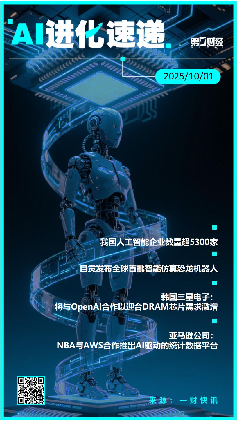 20:33【AI进化速递丨我国人工智能企业数量超5300家】①我国人工智能企业数量超5300家;②自贡发布全球首批智能仿真恐龙机器人;③韩国三星电子:将与OpenAI合作以迎合DRAM芯片需求激增;④亚马逊公司:NBA与AWS合作推出AI驱动的统计数据平台。