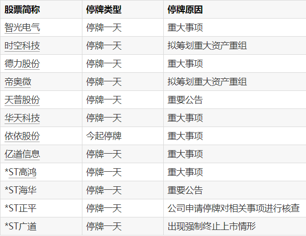 09:01【A股停牌提示:12股今日停牌】Wind数据显示,10月14日,智光电气、时空科技、德力股份等12只个股停牌。