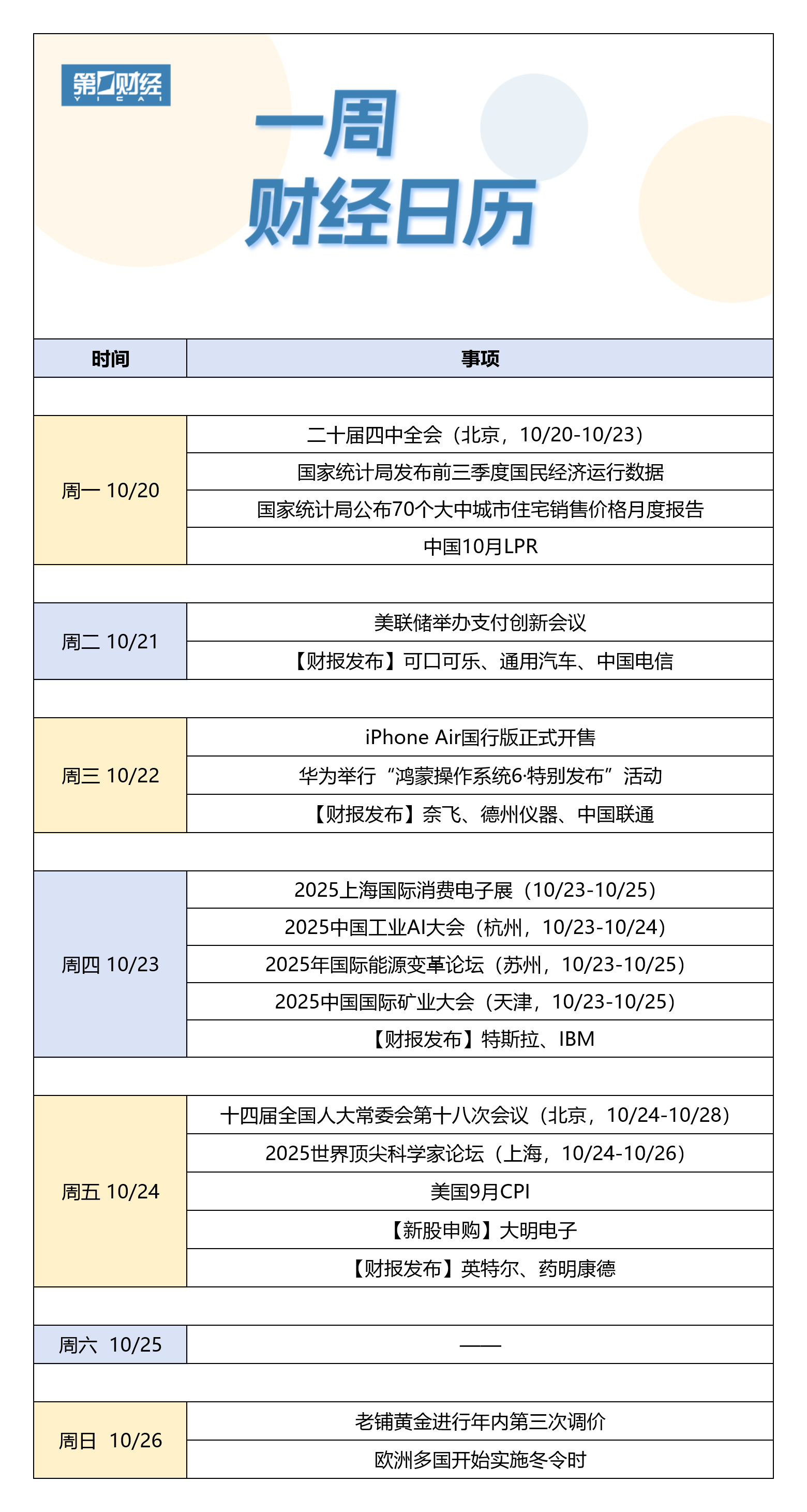 【下周财经日历】10月20日-10月26日