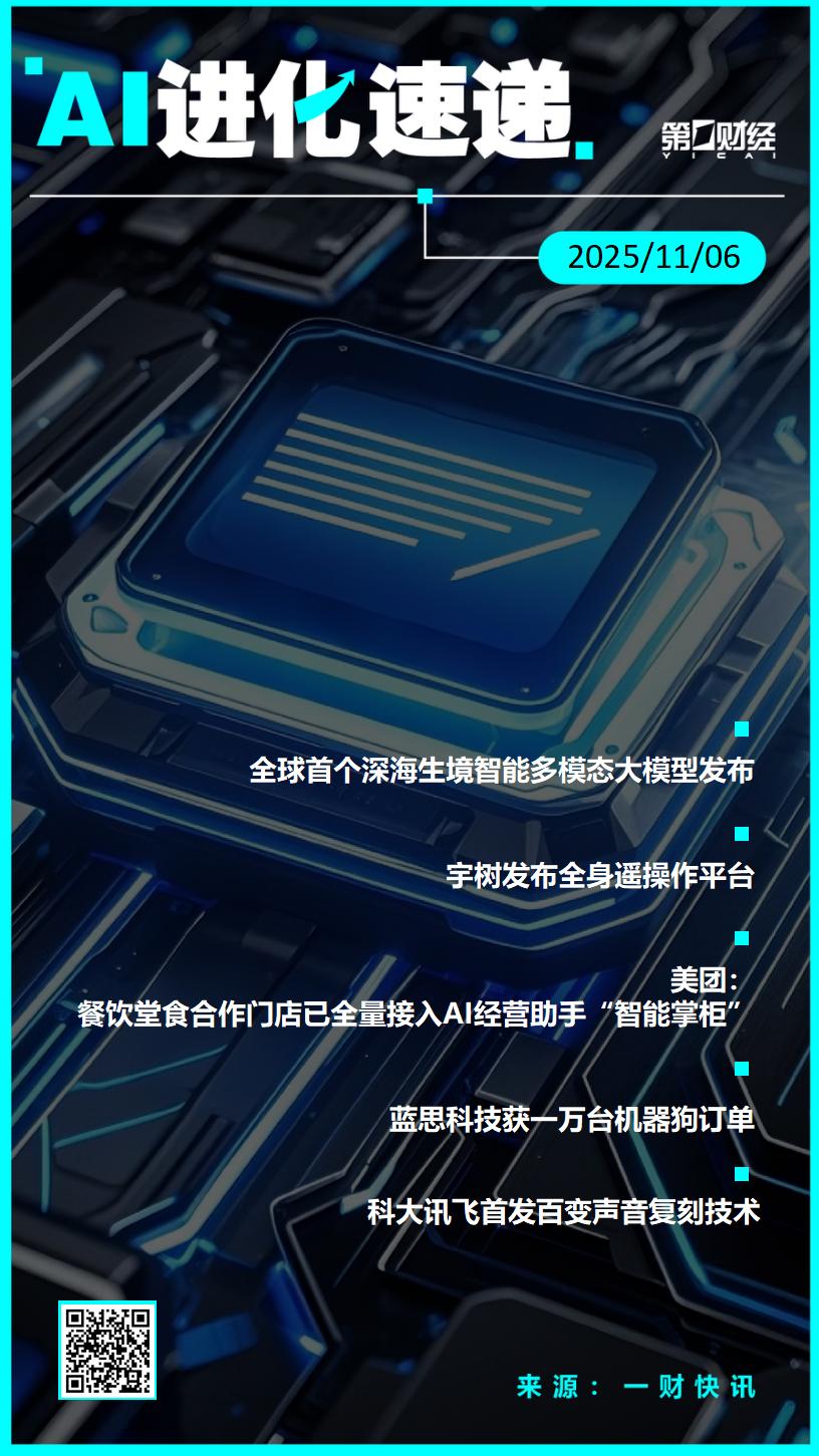 20:33【AI进化速递丨宇树发布全身遥操作平台】①全球首个深海生境智能多模态大模型发布;②宇树发布全身遥操作平台;③美团:餐饮堂食合作门店已全量接入AI经营助手“智能掌柜”;④蓝思科技获一万台机器狗订单;⑤科大讯飞首发百变声音复刻技术。