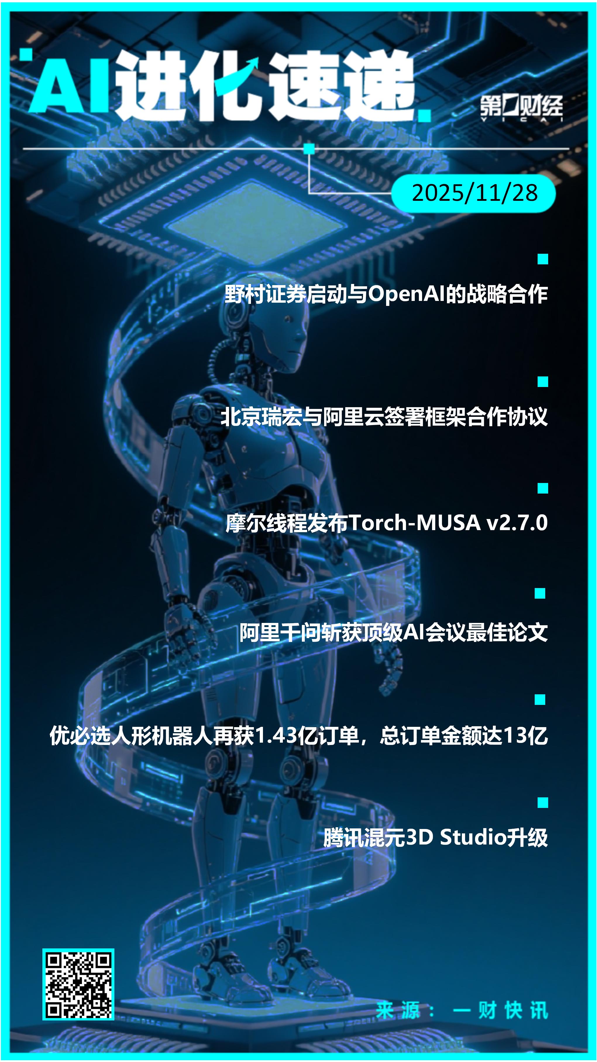 20:41【AI进化速递丨摩尔线程发布Torch-MUSA v2.7.0】①野村证券启动与OpenAI的战略合作;