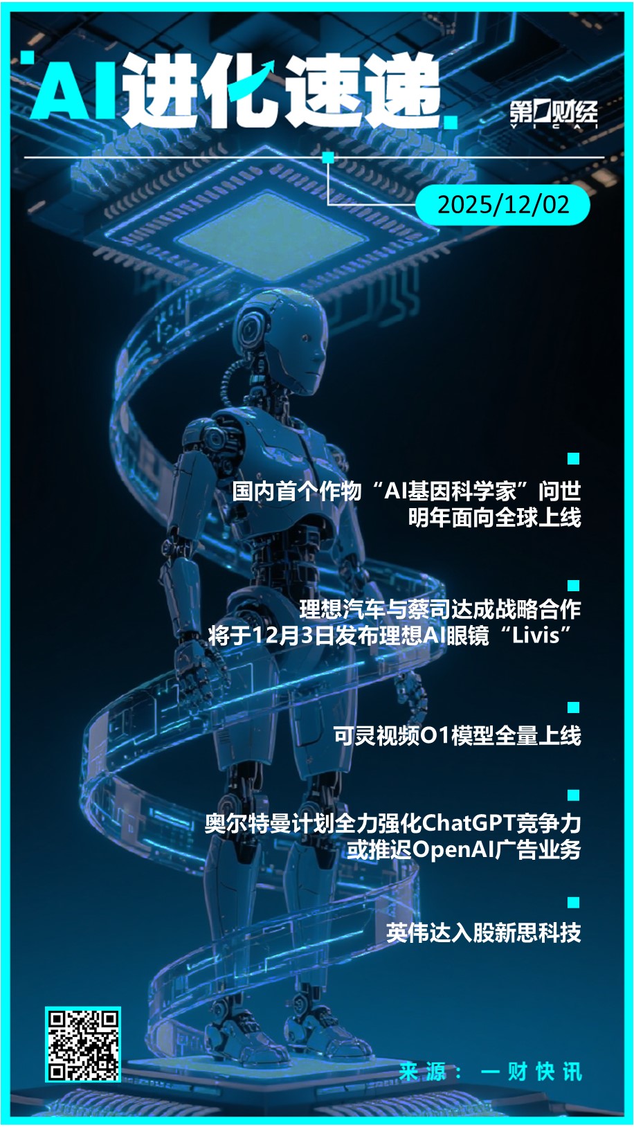 ②理想汽车与蔡司达成战略合作,将于12月3日发布理想AI眼镜“Livis”;