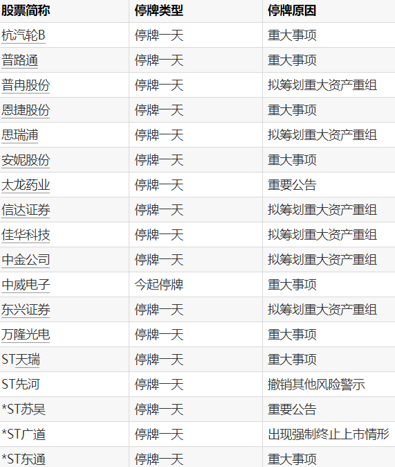 09:01【A股停牌提示:18股今日停牌】Wind数据显示,12月5日,杭汽轮B、普路通、普冉股份等18只个股停牌。