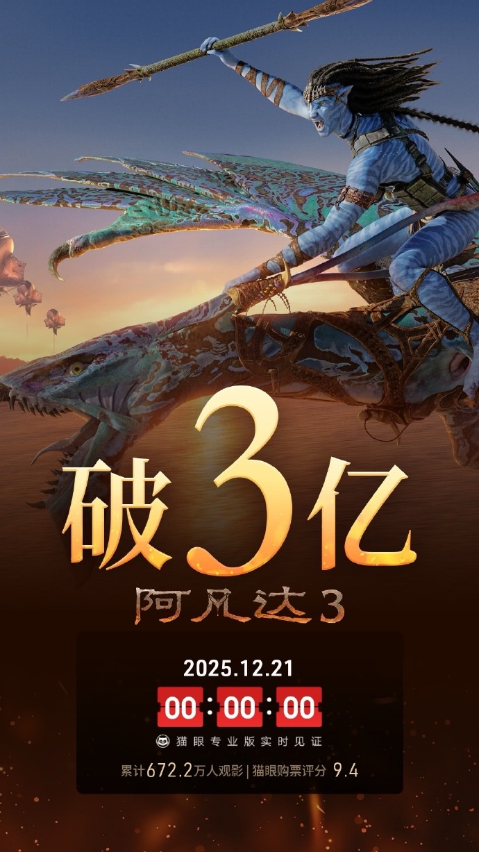 08:08【电影《阿凡达3 》总票房破3亿元】据猫眼专业版数据,电影《阿凡达3 》上映3天,总票房破3亿。