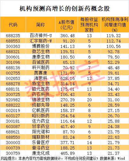 12:33【2025年中国创新药两项数据创历史新高 高增长潜力概念股出炉】据数据宝,国家药监局1月3日发布消息,2025年我国创新药发展迈上新台阶:全年共批准上市创新药76个,较2024年的48个大幅增长;同时,创新药对外授权交易总额突破1300亿美元,交易数量超150笔,两项数据均创历史新高。从类别看,2025年获批的76个创新药中,化学药品占47个,生物制品23个,中药6个。其中,国产创新药表现突出:化学药品中国产占38个,生物制品中国产占21个,占比分别达80.85%和91.30%。从未来增长潜力来看,根据5家以上机构一致预测,2026年、2027年净利润增速均有望超20%的创新药概念股有23只。股价表现方面,上述23只高增长潜力的创新药概念股中,截至1月12日收盘,最新收盘价较2025年以来高点回撤20%以上的有9只,包括锦波生物、科兴制药、奥赛康、微芯生物、汇宇制药-W等。