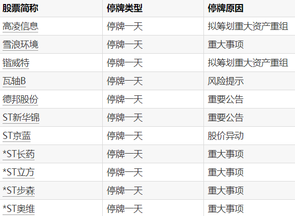 09:01【A股停牌提示:11股今日停牌】Wind数据显示,3月19日,高凌信息、雪浪环境、锴威特等11只个股停牌。