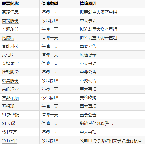 09:01【A股停牌提示:16股今日停牌】Wind数据显示,3月27日,高凌信息、首钢股份、长源东谷等16只个股停牌。