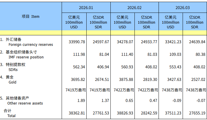 16:05【央行连续17个月增持黄金】央行数据显示,中国3月末黄金储备报7438万盎司,2月末为7422万盎司,为连续第17个月增持黄金。中国3月外汇储备33421.23亿美元,前值34278.07亿美元。
