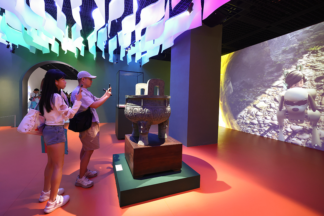 2025年9月29日下午,为配合第36届上海旅游节,“了不起的老祖宗——周同学的时空奇遇记”主题艺术秀在上海博物馆人民广场馆启幕。艺术秀以周杰伦官方二次元IP形象“周同学”为叙事线索,通过数字科技与潮流艺术语言,以上海博物馆十二件馆藏珍贵文物融合AI光影、全息投影、机器人互动、NFC数字抽卡等现代技术,打造一个传统与现代碰撞、过去与未来共鸣的沉浸式文化现场,这也是上海博物馆首次探索传统文化与当代潮流艺术跨界融合的创新尝试。